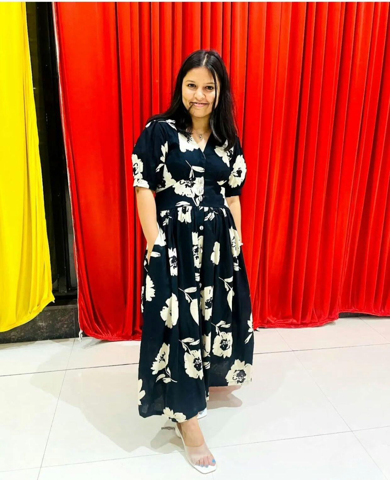 Add charm and confidence to your wardrobe with this elegant black floral dress , designed to flatter every body beautifully. Featuring a button-down front and a gently gathered waist, it creates a comfortable yet stylish silhouette that moves with you. The soft, flowy fabric and striking floral print make it ideal for brunch dates, weekend outings, or casual evenings. With convenient pockets and puff sleeves, this dress blends functionality with timeless fashion , making it your new everyday favorite!